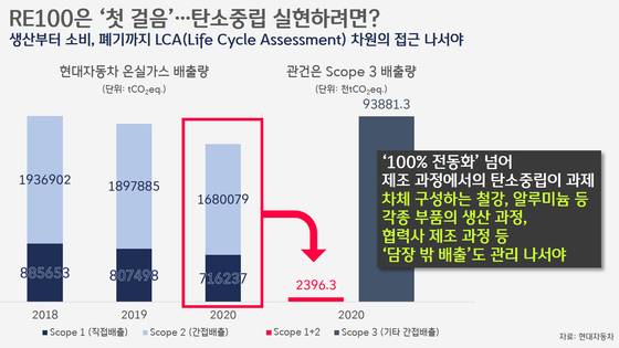 자동차의 경우, 그럼 LCA 차원에서의 탄소중립이 의미하는 바가 무엇일까요. 자동차 자체에서 뿜어져 나오는 탄소 배출량은 점차 0에 수렴하게 됐으니, 앞으로의 관건은 '판매 이전'의 배출량이 된 것이죠. 이는 자동차 제조사가 공장에서 차를 조립하는 과정에서의 배출량만을 의미하지 않습니다. 차체를 구성하는 강판, 자동차 내·외장에 쓰이는 플라스틱과 인조가죽 등 철강, 석유화학 산업의 배출량을 포함하죠. 결국, 수송부문의 탄소중립은 연계 산업의 온실가스 감축, 탄소중립 없이는 불가능한 겁니다.