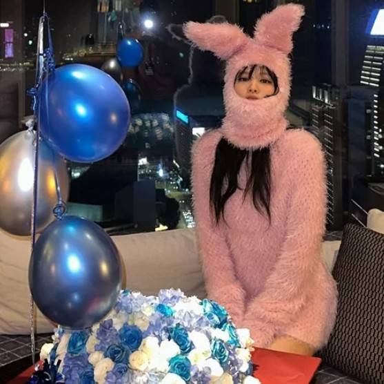 제니는 커다란 풍선과 꽃다발 앞에서 근황을 전했다. 핑크색 원피스와 토끼 모자를 착용하고 귀여운 매력을 뽐내 이목을 끌었다.