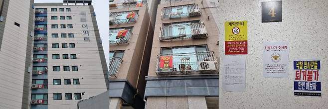 이러한 단체행동의 흔적은 숭의동 일대에서 쉽게 찾아볼 수 있었다. 안씨가 살고 있는 아파트와 5차선 도로를 사이에 둔 길 건너편 단지에도 발코니 곳곳에서 붉은 현수막을 내걸어 놨다. 인근에는 아예 전 층이 단합해 ‘전세사기보증금반환’이라는 팻말을 내걸어 놓은 단지도 있었다.