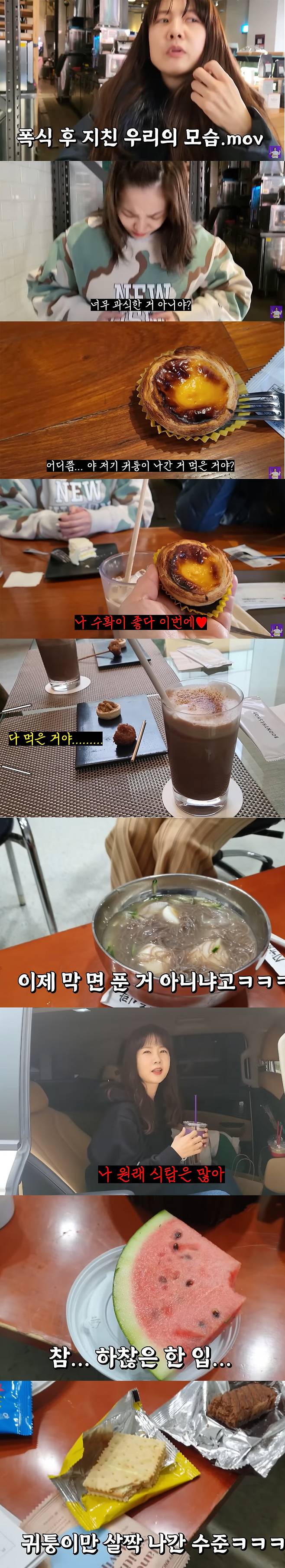 영상 속에서 김숙은 "1년 전 400만뷰 이상을 기록했던 소식좌들이 1년만에 더 강력하게 돌아왔다"며 최근 박소현 산다라박과 함께한 하루를 공개했다.