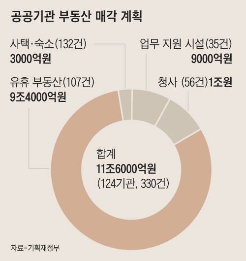 정부는 작년 11월 발표한 공공기관 자산효율화 계획에서 2027년까지 124개 공공기관이 11조6000억원 규모의 비핵심 부동산 330건을 매각할 예정이라고 밝혔다. 더불어민주당 강준현 의원실에 따르면, 작년부터 부동산 100건의 매각이 시작됐고, 올해는 120건 매각을 시도할 계획이다. 이 같은 매각 실적은 공공기관 경영평가 가운데 ‘혁신계획 실행 노력과 성과 가점(5점)’ 지표에 반영될 예정이다.