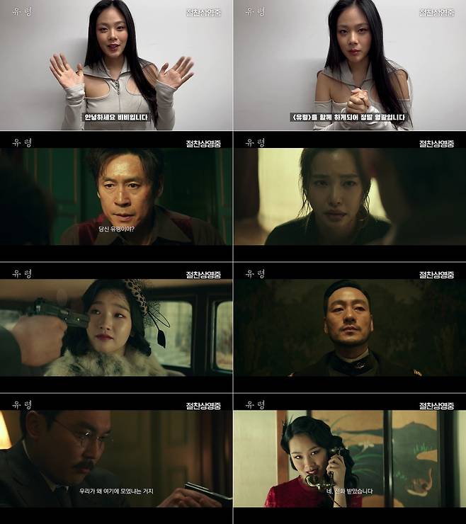 특히 ‘카이토’(박해수)의 “그 유령은 지금 이 안에 있습니다” , ‘쥰지’(설경구)의 “당신 유령이야?”, ‘차경’(이하늬)의 “너 정체가 뭐야?”, ‘천계장‘(서현우)의 “우리가 왜 여기에 모였냐는 거지”, ‘유리코’(박소담)의 “어차피 넌 날 못 쏴. 내가 유령일 수도 있으니까”라는 대사가 등장해 단번에 몰입도를 높이며 과연 누가 ‘유령’인지, 나아가 ‘유령’은 모든 의심을 뚫고 나가 작전을 성공시킬 수 있을지 궁금증을 증폭시킨다.