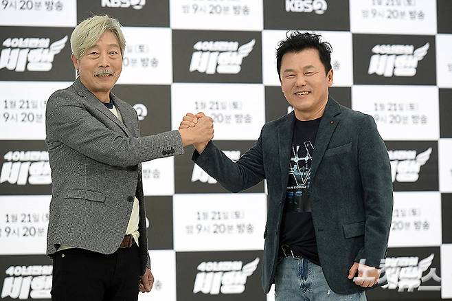 밴드 송골매 구창모, 배철수가 18일 서울 여의도 KBS본관에서 열린 KBS 설 대기획 송골매 콘서트 '40년만의 비행' 기자간담회에서 포즈를 취하고 있다. 'KBS 대기획'은 오는 21일 오후 9시 20분에 송골매의 콘서트로 시청자들을 찾아간다. 박종민 기자