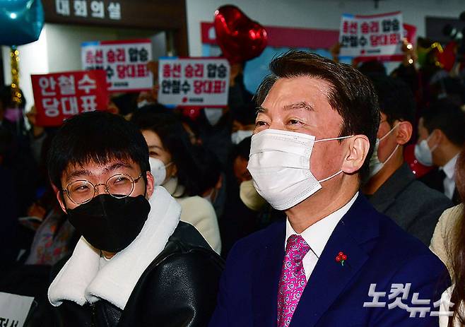 국민의힘 당권주자인 안철수 의원이 18일 서울 여의도 중앙당사에서 열린 '안철수 170V 캠프 출정식'에 참석하고 있다. 윤창원 기자