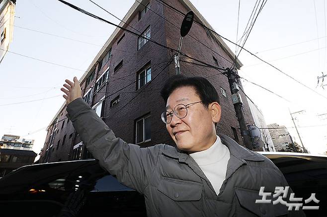 더불어민주당 이재명 대표가 18일 오후 서울 마포구 망원시장에서 '대장동·위례신도시' 개발특혜 의혹 사건 관련 검찰의 소환 통보에 대한 입장을 밝히고 차량에 올라 지지자들을 향해 인사하고 있다. 이 대표는 "수없이 많은 현안이 있는 이 상황에서 주중에는 일을 해야겠으니 (검찰이 요구한) 27일이 아닌 28일 토요일에 출석하겠다"고 말했다. 류영주 기자