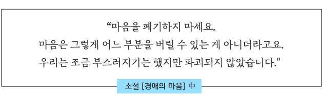 소설이 책으로 묶일 때쯤… 책이 독자들에게 전달되고 나면, 저는 그 자리에 없거든요. 책의 완성으로 제 역할은 끝난 것이어서… 그러면 소설 속 인물과 헤어지는 기분이 들어요. 독자들이 소설 속 인물들을 만날 때, 작가는 그 인물들과 헤어진 채로 다음 인물한테 나아가거든요. 그래서 항상 이별하는 기분이에요. 책을 내고 나면.