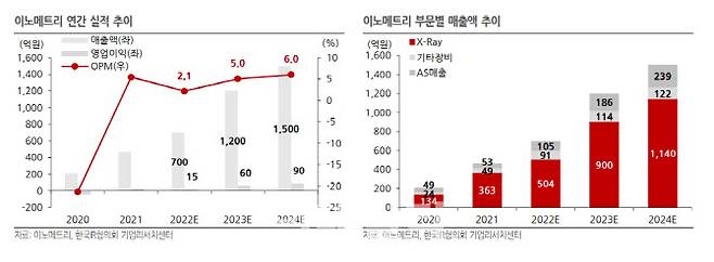 김 연구원은 이노메트리가 조립공정 전후의 이물질 유입 여부를 검사하는 이물검사 장비를 신규로 개발해 작년 3분기부터 국내 대형제조사 2곳의 양산라인에 공급하고 있는 점에도 주목했다.