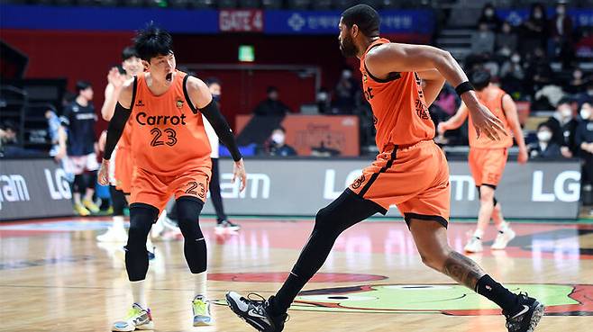 프로농구 고양 캐롯이 선두 안양 KGC인삼공사에 완승을 거두고 5연승을 질주했습니다.