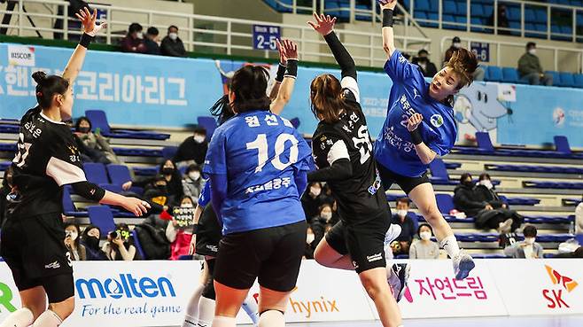이날 경기 전까지 광주도시공사와 삼척시청, SK 슈가글라이더즈 세 팀이 나란히 4승 1무로 공동 1위였는데, 광주도시공사가 시즌 5승 고지에 선착하며 단독 선두가 됐습니다.