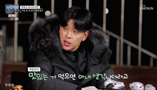 류시원도 “나도 그렇다. 맛있는 것 먹으면 아내가 생각난다”며 배기성에 공감했다. 신현준은 허영만에게 “선생님도 그러세요?”라고 질문했고, 허영만이 “그렇지”라고 답하자 “영혼이 너무 없으시다. 이렇게 영혼 없는 것 처음 본다”고 너스레를 떨어 웃음을 자아냈다.