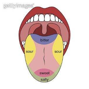 이것과 비슷한 그림, 기억나시나요? 학창 시절 혀의 어떤 부분에서 맛을 느끼는지 보여주었던 일명 '맛 지도'입니다. 그림을 보고 매우 신기해하며 단맛이 정말 혀끝에서 잘 느껴지는지 사탕을 입안에서 여기저기로 굴려본 기억이 납니다.