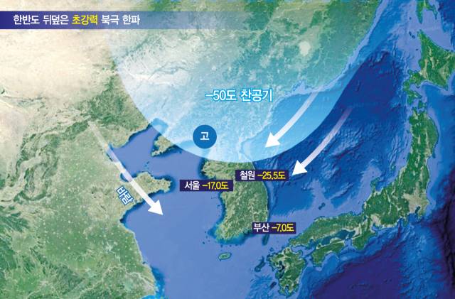 한중일 덮친 '북극 한파'···철원 체감온도 영하 40도·中 영하 53도까지 뚝
