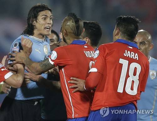 2015년 코파 아메리카 대회에서 또 우루과이 선수에게 비신사적인 행동을 했는데, 이번 피해자는 에딘손 카바니였다.