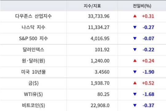 이날 국채 금리는 하락했다. 10년물 국채 금리는 전일대비 1.9% 하락한 3.45% 수준까지 내렸다. 2년물 금리는 전일비 0.66% 하락한 4.21% 수준에서 마감했다.