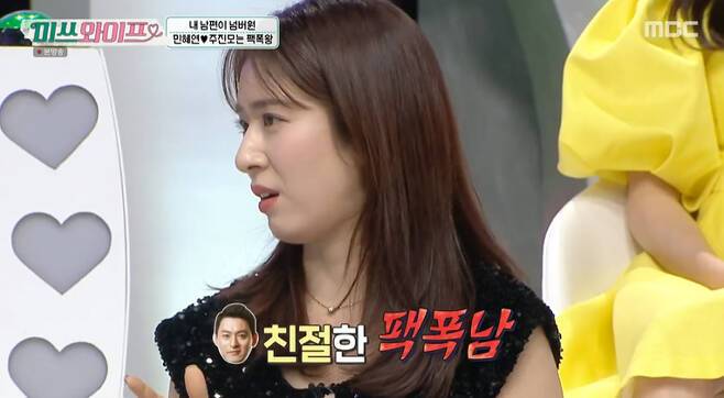 이어 '내 남편이 넘버원' 코너에서는 1등 남편을 가리기 위해 아내들의 치열한 토크 배틀이 이어졌다. 민혜연은 남편 주진모가 "팩폭을 친절하게 한다"며, 그동안 주진모가 했던 충격 발언을 전했다.