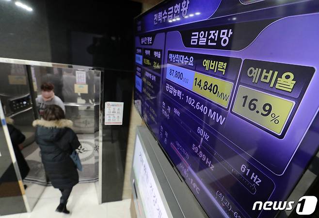 전력거래소에 따르면 기록적인 한파의 영향으로 이날 전력수요가 급증해 예상수요는 8만7800메가와트(MW) 예비력은 1만4840메가와트(MW)로 예비율이 16.9%를 기록해 20%이하로 떨어질 것으로 전망했다. 2023.1.25/뉴스1