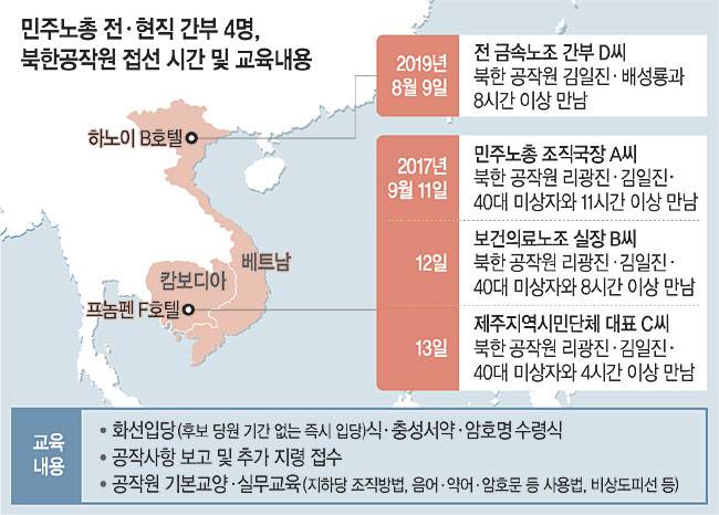 - 캄보디아서 북한 접선 민노총 간부들, 암호문 수령 · 공작원 교육 받았다