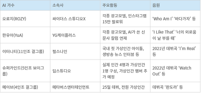 ◆ 최근 데뷔한 국내 가상인간 가수