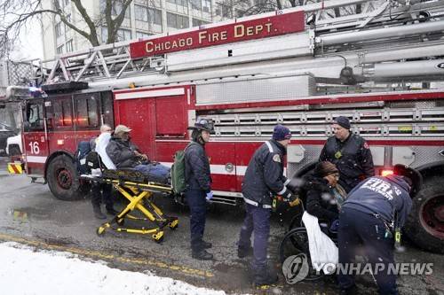 Chicago firefighters evacuate two people out of the Harper Square cooperative residential building to waiting ambulances in the Kenwood neighborhood of Chicago, Wednesday, Jan. 25, 2023. (AP Photo/Charles Rex Arbogast)