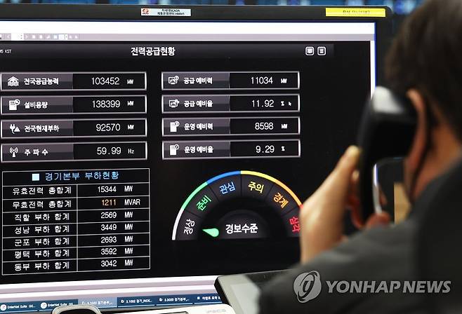 (수원=연합뉴스) 홍기원 기자 = 북극 한파가 이어지며 전력 수요가 증가하고 있는 26일 오후 경기도 수원시 한국전력공사 경기지역본부 전력관리처 계통운영센터에서 관계자들이 전력수급상황을 점검하고 있다. 2023.1.26
