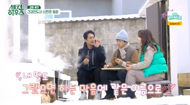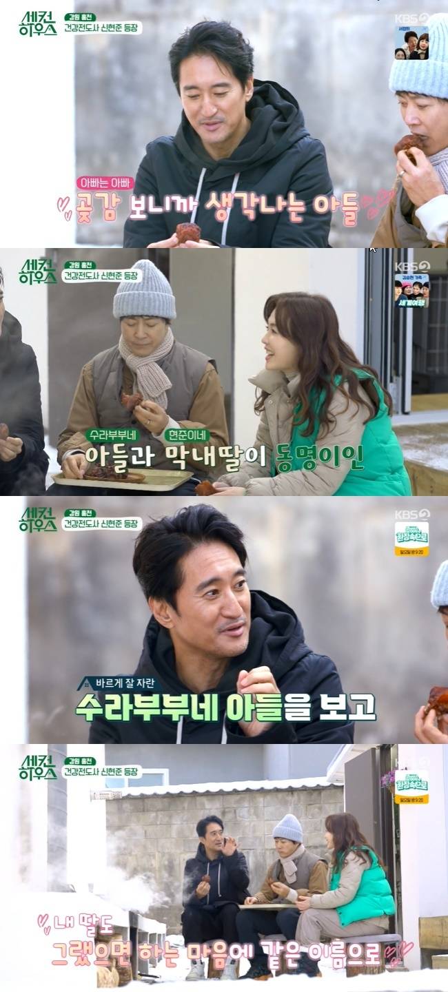 직접 만든 곶감이 나오자 신현준은 “큰 애가 너무 좋아한다”라고 큰 아들을 떠올렸다. 그때 하희라는 “막내딸 이름이 우리 아들이랑 똑같지 않나”라고 인연을 공개했다. 신현준은 “두 분 아들이 너무 잘 자란 것 같아서 우리도 이름 두 개 중에 민서로 했다. 그게 크게 작용했다”라고 말했다.
