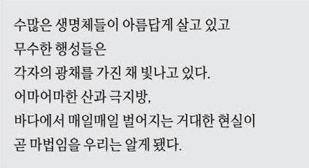 그러나 이제 우리는 그것이 모두 허무맹랑한 이야기라는 걸 안다. 그 대신 우리는 '현실'이라는 마법을 만났다.