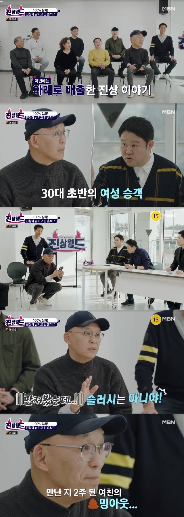 진장은 씨는 "남자친구는 안 믿었다. 만난 지 2주됐다는 거다. 더 안 믿지. 온갖 번뇌가 지나갔을 거다. 사진을 보내줬다. '당신 여자친구가 똥을 놔두고 내렸다'고 '전화번호를 알려달라'고. 그러니까 알려주더라"며 "여자분에게 전화를 했다. '똥을 싸고 가시면 어떡하냐'고 하니까 두 마디도 안 하더라. (대뜸) '얼마면 됩니까'(라고 하더라)"고 밝혀 모두를 경악시켰다. (사진=MBN '우리가 몰랐던 세계-진상월드' 캡처)
