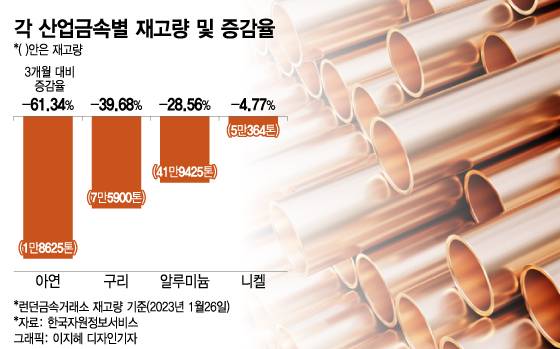 구리 가격도 마찬가지다. 전세계 재고량이 감소하는 가운데 수요 회복 기대감이 유입된 데 따른 것이다. 전날(26일) 기준으로 런던금속거래소에서의 구리 재고량은 7만5900톤으로 3개월 전보다 약 39.68% 감소했다.