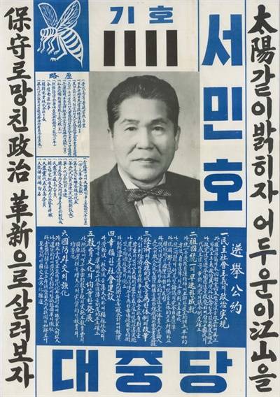 | ▲ 제6대 대통령선거 서민호 후보 벽보 1967.05.03. 제6대 대통령선거일 선거운동 벽보 |