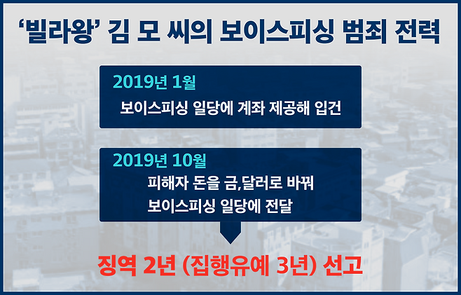 "마이바흐를 타고, 술값으로 1천만 원 넘는 돈을 쓰고"…그들이 이른바 '빌라왕'이 된 이후의 행적에 대해선 관심이 쏟아졌지만, 그 전엔 우리 사회의 누구였는지에 대해서는 그렇지 않습니다. 하지만, 전세사기 범죄를 타인의 고통으로써 소비하는 데 그치지 않고 해법을 찾기 위해서는, 우리는 먼저 그들이 어디에서 왔고 어디로 향하는지를 직시해야 합니다. 보이스피싱 중간책에서 빌라왕으로 숨진 빌라왕 김 모 씨가 본격적으로 전세 사기 범죄에 뛰어든 건 2020년으로 추정됩니다. 그는 지난 2020년 한 해에만 370여 채에 달하는 주택 명의를 이전받았습니다. 그의 이름을 딴 '○○하우징'이란 법인 설립 시기도 2020년입니다. 그렇다면, 그는 그전에 무엇을 했을까요? 불과 1년 전인 2019년 그는 보이스피싱 일당에게 계좌를 제공해 줬다가 수사기관으로부터 수사를 받았습니다.
