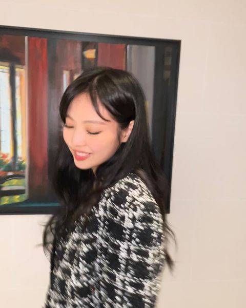 특유의 시크한 표정으로 카메라를 응시하고 있는데, 눈빛이 강렬하게 빛난다. 특히 사진 프레임이 꽉 찰 정도로 제니의 길쭉한 기럭지 등 명품 각선미가 탄성을 자아낸다. 제니의 러블리한 미소는 보는 이들을 두근거리게 한다.