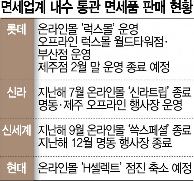 신라면세점도 지난해 9월 신라인터넷면세점의 여행 중개 플랫폼 ‘신라트립’을 통해 운영하던 면세 통관 상품 판매 서비스를 종료했다. 현재 오프라인에서는 서울과 제주 시내면세점, 온라인에서는 쿠팡 등 일부 채널에서만 상품을 판매하고 있다.