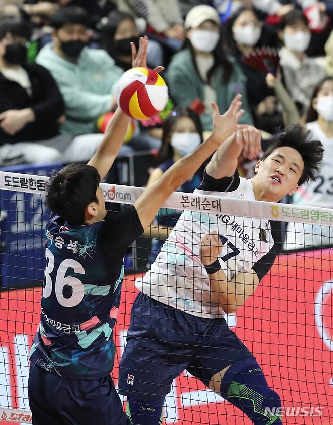 [인천=뉴시스] 김금보 기자 = 29일 오후 인천 삼산월드체육관에서 열린 도드람 2022~2023 V-리그 올스타전 경기, 임동혁이 공격하고 있다. 2023.01.29. kgb@newsis.com