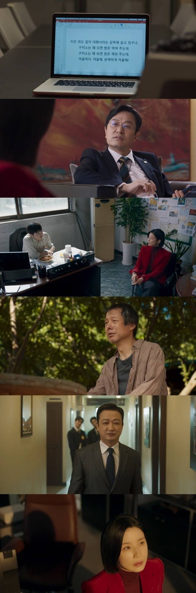 배정현으로부터 원하는 모든 걸 받아내는 데 성공한 고아인은 낡은 개인 사무실을 운영하고 있는 최영재 변호사도 찾아가 "변호사님 활동을 지원하려 한다. 1년에 30억씩"이라는 폭탄 제안을 건넸다. 그리고 그를 통해 의문의 인물 섭외에 성공한 고아인은 최대한 신파 분위기로, 사기업이 아닌 공적기관의 메시지처럼, '법은 완벽하지 않습니다'라는 카피로 광고를 완성했다.