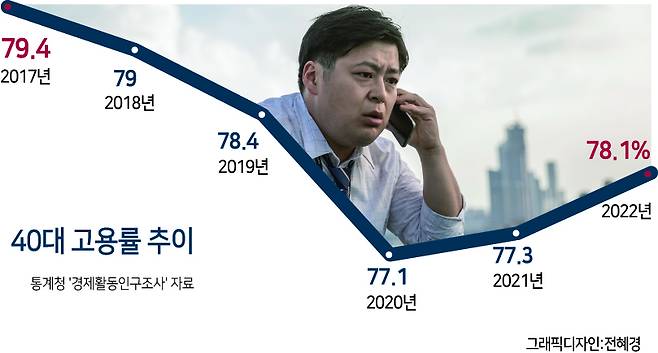 전연령층 중 40대만 유일 고용률 감소