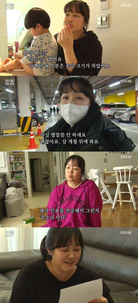 '인간극장' 정미애가 설암으로 힘든 시기를 보냈던 때를 떠올렸다.