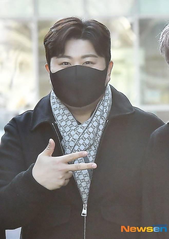 가수 김호중& 에스페로가 1월 30일 방송 프로그램 녹화를 위해 KBS 방송국으로 들어서고 있다.