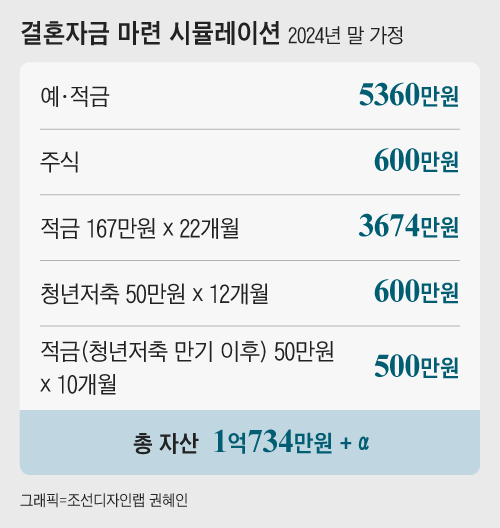 금융 상품을 선택할 때는 돈을 모으는 목적과 기간이 중요합니다. 앞으로 결혼할 때까지 22개월 남았는데 2년 이내의 재무 목표를 달성하려면 수익률보다는 원금을 보존할 수 있는 안전한 상품을 선택해야 합니다. 그런 상품으로는 은행 예·적금이 가장 적합하겠죠. 고금리 특판이 나오면 놓치지 마세요.
