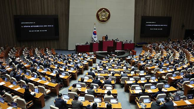 직회부 건은 국회법에 따라 30일 이내 여야 합의가 없으면 이후 처음 열리는 본회의에서 부의 여부를 묻는 무기명 투표를 진행해야 합니다.