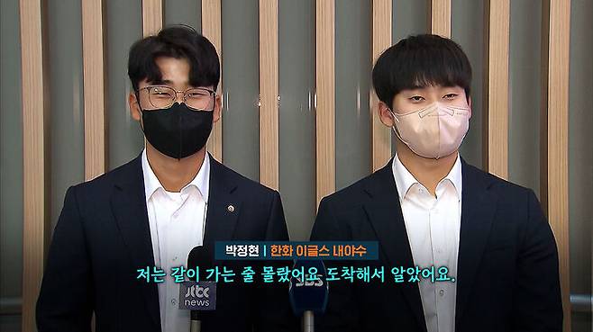 묵묵히 짐만 옮기던 박영현의 얼굴이 환해진 건 친형 박정현 소식을 전해 들었을 때였습니다. 박정현의 소속팀 한화도 이번 전지훈련을 미국 애리조나에서 진행하는데 마침 KT와 같은 출국 비행기 편이었던 겁니다. 이 사실을 몰랐던 박영현은 "형이 같은 비행기로 가는 줄 몰랐어요"라면서 급하게 휴대폰을 집어 들었습니다.