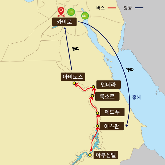 이번 일정은, 기원전 3100년경 상·하 이집트 통일로 시작된 초기 왕조시대부터 이집트가 로마제국의 영토로 편입될 때까지 3000여년의 고대 이집트에 집중됐다. 곽 소장이 ‘더 많은 유적, 남들이 경험하지 못하는 유적지를 보자’는 목표로 고심하며 일정을 짰다. 한반도의 5배 넓이로 이동거리가 긴 이집트 지리를 고려해 시대순으로 유적지를 묶었다. 고왕국 시대의 초창기 유적들이 많은 사카라와 최초의 수도 멤피스, 피라미드의 변천사를 볼 수 있는 다슈르부터 시작해, 남쪽의 아스완에서 고왕국과 중왕국 시대의 귀족 무덤군과 유적지를 본 후 신왕국 시대 람세스 2세의 아부심벨 신전까지 들른다. 그다음 신왕국 시대의 유적들이 몰려 있는 룩소르로 이동해 왕들의 계곡과 신전, 박물관들을 둘러본 후 아비도스를 거쳐 카이로로 돌아와 이집트 문명 이후인 이슬람 유적과 기독교 유적을 맛본 후 이집트 박물관을 둘러보면서 총정리하는 코스다.