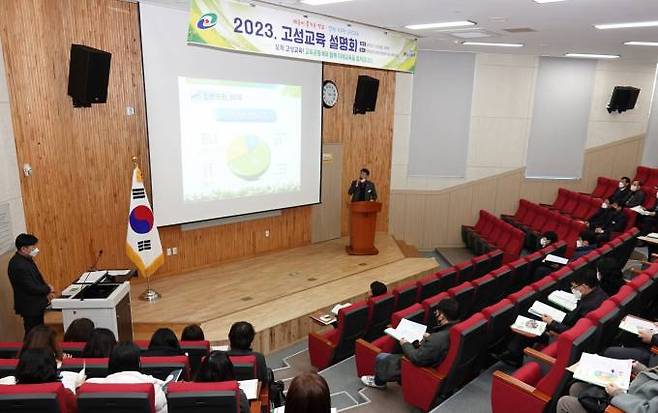 경상남도고성교육지원청(교육장 김정애)은 30일 경상남도교육청 종합복지관에서 관내 유치원장, 학교장, 도서관장, 각급학교 교육과정 업무담당자 및 참가 희망 교직원 등 80여명을 대상으로 2023. 고성교육 설명회를 개최했다.
