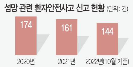이에 따라 병원 내 섬망 안전사고 발생 현황에 대한 정확한 실태조사가 필요하다는 목소리가 나온다. 건강보험심사평가원에 따르면 섬망 질병코드(F05)로 진료받은 환자는 2017년 8267명에서 2021년 9750명으로 꾸준히 증가 추세다. 다만 섬망 질병코드는 일선 현장에서 누락되는 경우가 많아 실제 보다 유병률이 낮게 나오는 문제가 있다. 중앙환자안전센터 관계자는 “2020년 1월 환자안전법이 개정돼 5년마다 병원 내 환자안전사고 실태 조사를 벌일 수 있게 됐다”며 “내년에 의무기록 등을 통해 섬망 사고 실태 조사하는 방안을 추진 중”이라고 말했다.