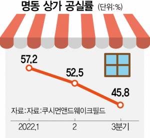 이처럼 유통 및 패션 기업들이 명동을 다시 찾는 이유는 최근 엔데믹으로 명동 상권이 활기를 되찾고 있기 때문이다. 서울관광재단에 따르면 관광정보센터를 찾은 외국인 방문객도 지난해 1~11월까지 49만 2767명으로, 전년 동기 5만 7077명보다 약 8배 많아졌다. 특히 명동 관광정보센터의 경우 전체 방문객 1만 5747명 중 81%인 1만 2801명이 외국인 방문객이었다. 또 글로벌 부동산 정보회사 쿠시먼앤드웨이크필드에 따르면 명동 상가 공실률은 올해 1분기 57.2%, 2분기 52.5%, 3분기 45.8%를 기록하며 꾸준히 줄어들고 있다.