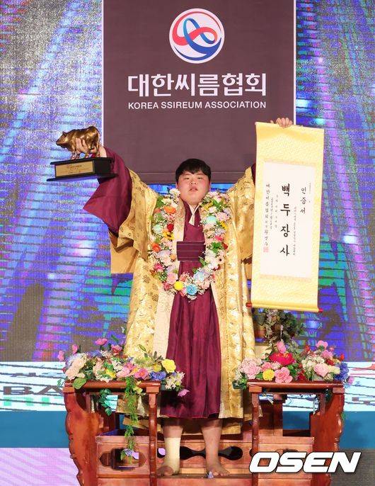2002년생으로 스무 살을 갓 넘긴 김민재는 지난해까지 울산대에 몸담고 있다가 올해부터 영암씨름단 소속으로 뛰고 있다. 김민재는 이미 울산대 2학년 때인 지난해 강릉 단오대회 백두급 우승에 이어 한해를 총결산하는 천하장사대회에서도 천하장사 칭호를 얻어 두각을 나타냈고, 이번 설 대회 포함 3개 대회 연속 가장 무거운 체급에서 정상을 차지했다. 그야말로 무서운 기세의 큰 씨름꾼 탄생으로 칭송을 들어 마땅한 성과였다.