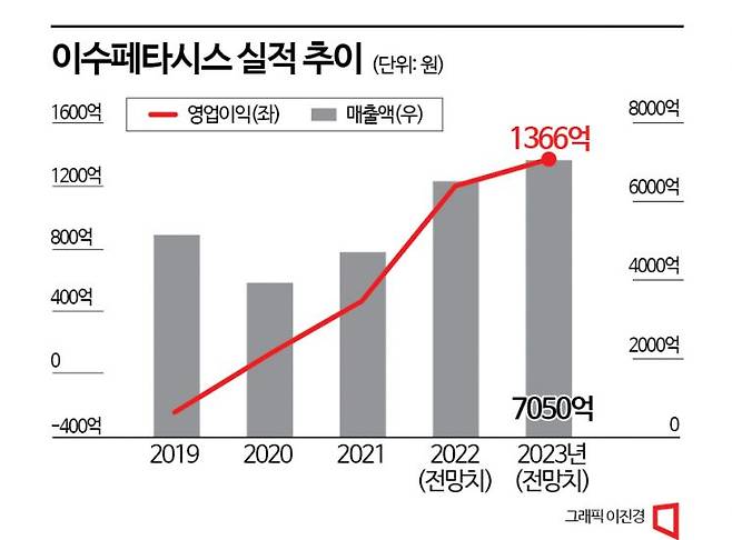 실적도 개선 추세를 보인다. 지난해 3분기 누적으로 매출액 4770억원, 영업이익 860억원을 기록했다. 1년 전보다 매출은 38% 늘어났고 영업이익은 200%에 가까운 560억원 증가했다. 증권 업계는 이수페타시스의 지난해 한 해 매출액과 영업이익을 6500억원, 1200억원 내외로 예상한다. 매출은 약 40% 늘고 영업이익은 150% 이상 증가한 수치다. 영업이익률도 10% 수준에서 20% 근방까지 늘어날 것이라는 전망이다.