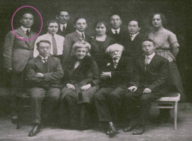 ▲ 대한민국임시정부 파리위원부 단체 사진. 맨 왼쪽 사람이 황기환 지사.