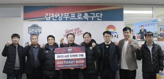 김천은 1일 대표이사실에서 김천시청 스포츠산업과의 티켓북 구매 행사를 열었다. 이날 행사에는 배낙호 김천 대표이사, 최한동 김천 후원회장, 이상진 김천시청 스포츠산업과장 등이 참석했다. 김천시청 스포츠산업과는 시청 실과소들 중 처음으로 2023시즌 김천 티켓북을 구매하며 김천의 K리그1 승격을 응원했다.