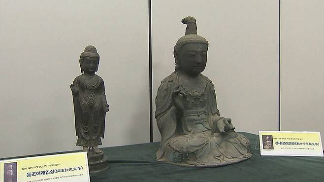 다른 문화재는 일본으로 반환됐지만, 이 금동관음보살좌상은 반환되지 않았습니다. 부석사 측이 '왜구의 침략에 의해 불법 반출된 문화재'라면서 한국 정부를 상대로 돌려달라는 소송을 제기했기 때문이죠.