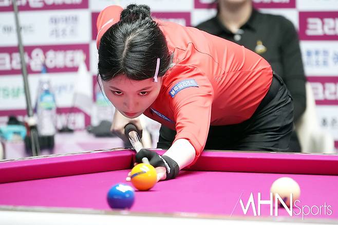 이날 64강전 2턴 경기 1번 테이블에서 경기를 펼치는고 있는 서한솔(26.블루원리조트)이 샷을 하고 있다.